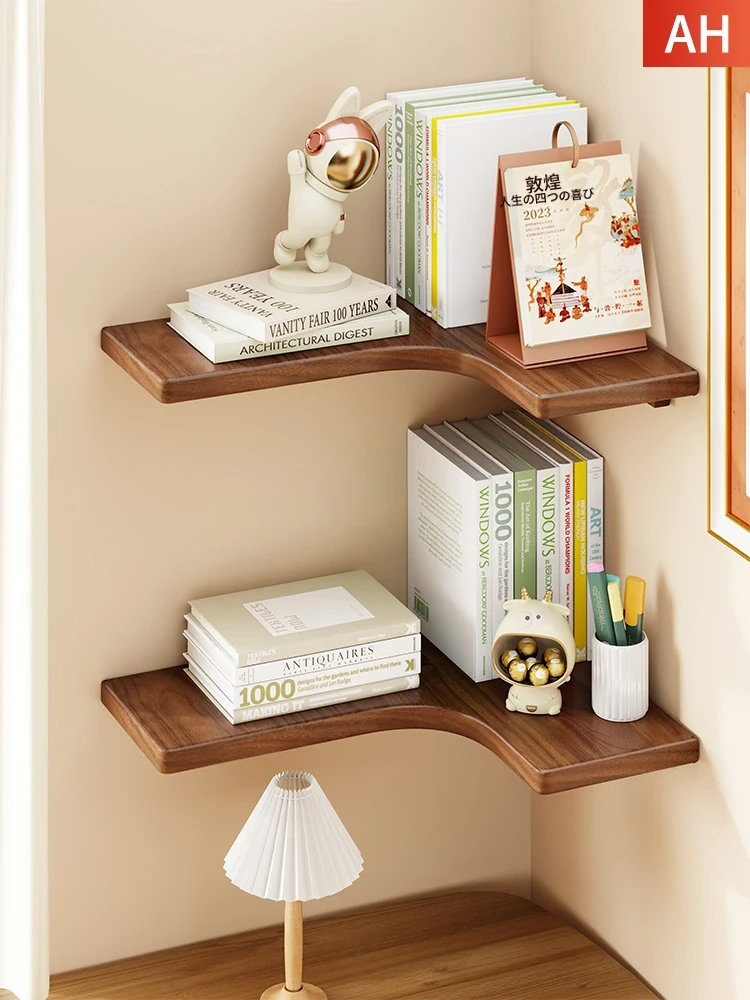 天然木製のコーナーシェルフ - 寝室やリビングに最適なL字型デザイン、壁掛け可能!キッチンの調味料や本をスタイリッシュに整理。おしゃれで実用的な収納空間を実現!