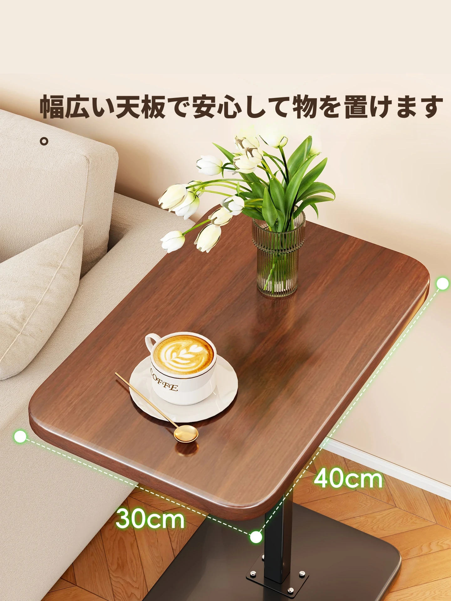 リフトアップ機能付きサイドテーブル|リビングや寝室に最適な移動可能な収納ラック|小さなコーヒーテーブルとしても活躍!おしゃれで便利なサイドキャビネット