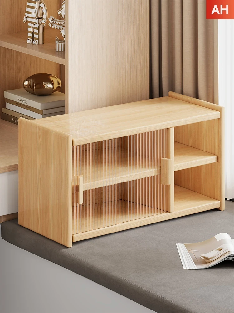 Stylish Window Shelf Bookcase - Compact Wooden Desktop Storage Cabinet with Doors for Dust-Free Book Organization at Home