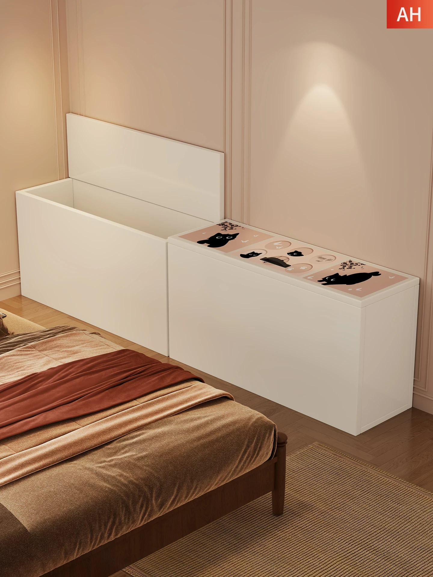 Modern Minimalist Bedside Cabinet - Sleek Long Storage Unit for Bedroom, Perfect for Small Spaces and Tight Corners, Ideal for Organizing Essentials by Your Bed
