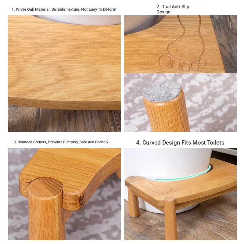 Solid Wood Toilet Stool - Non-Slip Step Stool for Kids and Adults, Ideal for Squatting Toilets and Bathrooms, Comfortable Footrest for Enhanced Bathroom Experience
