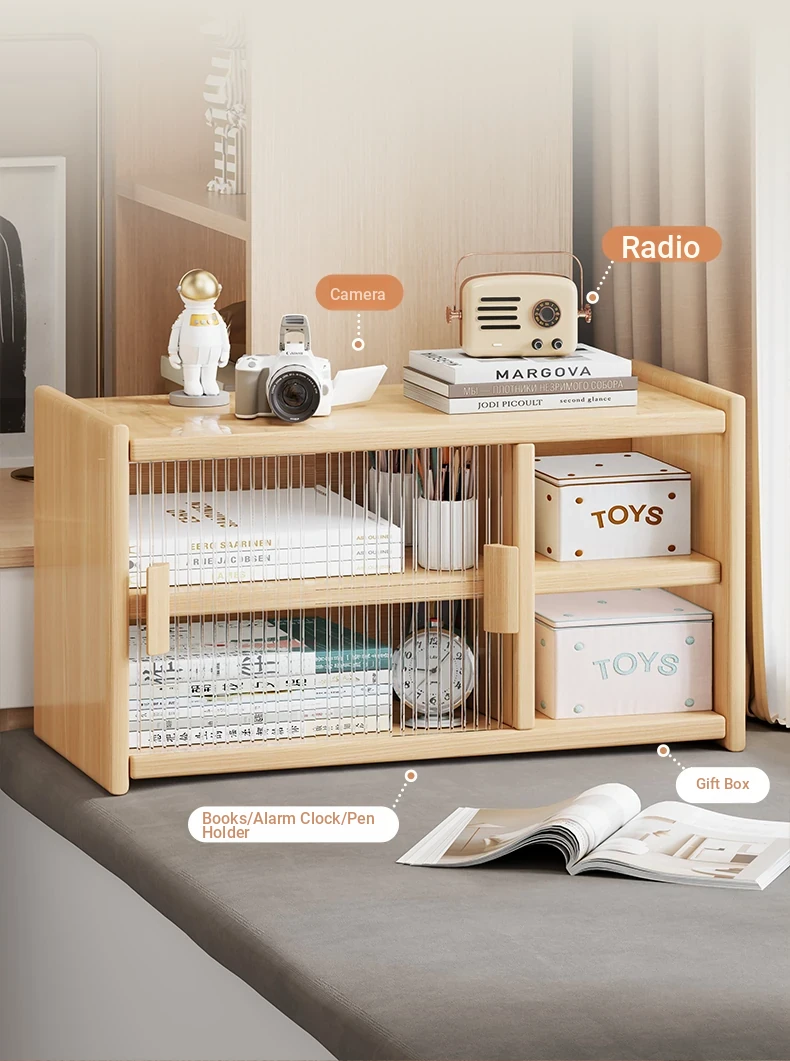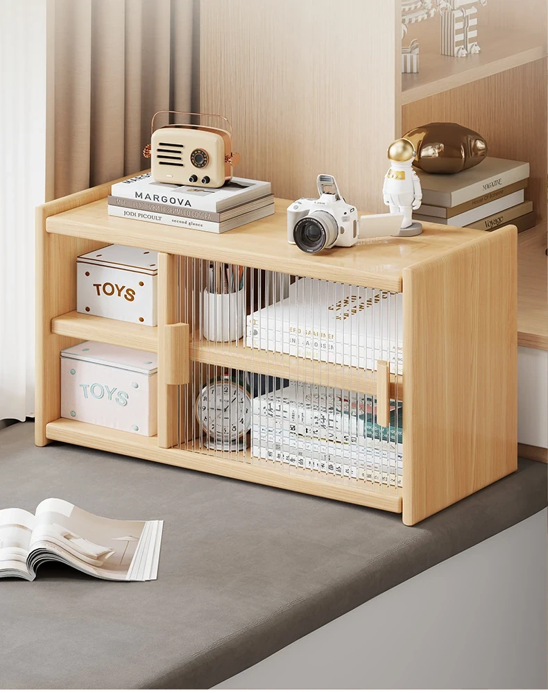 Stylish Window Shelf Bookcase - Compact Wooden Desktop Storage Cabinet with Doors for Dust-Free Book Organization at Home