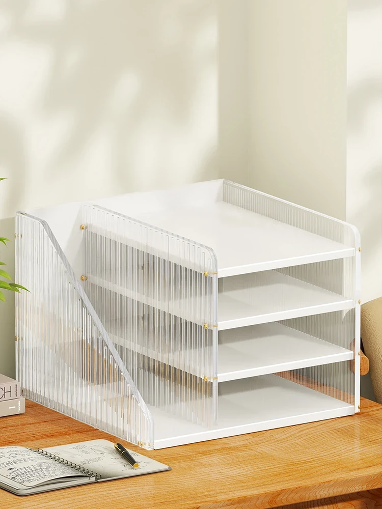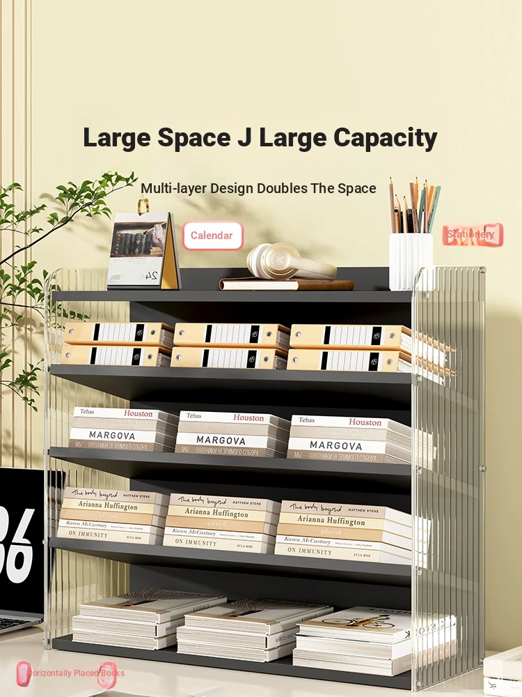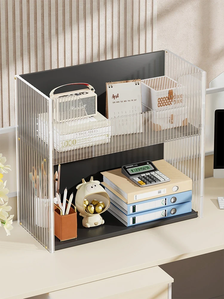 Multilayer Acrylic Bookshelf - Stylish Desk Storage Rack for Books, Office Files, and Dorm Room Organization, Perfect for Maximizing Space and Keeping Your Workspace Tidy!