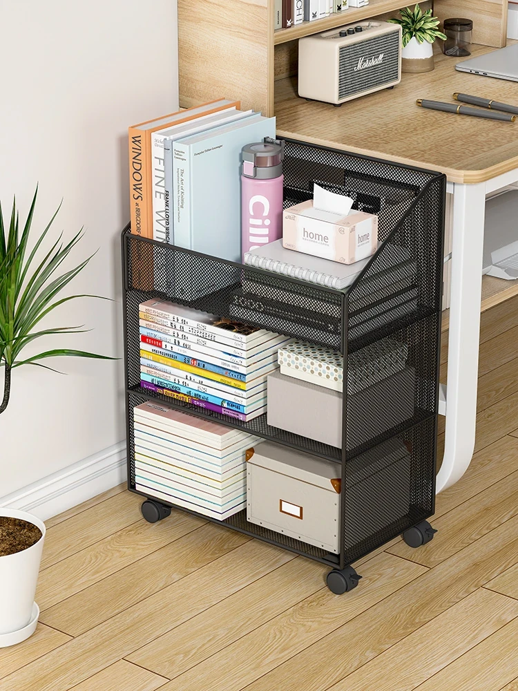 Mobile Bookshelf and Storage Rack for Office and Dorm – Floor and Desktop Organizer with Wheels, Ideal for Students and Small Spaces, Perfect for Desk Side Use