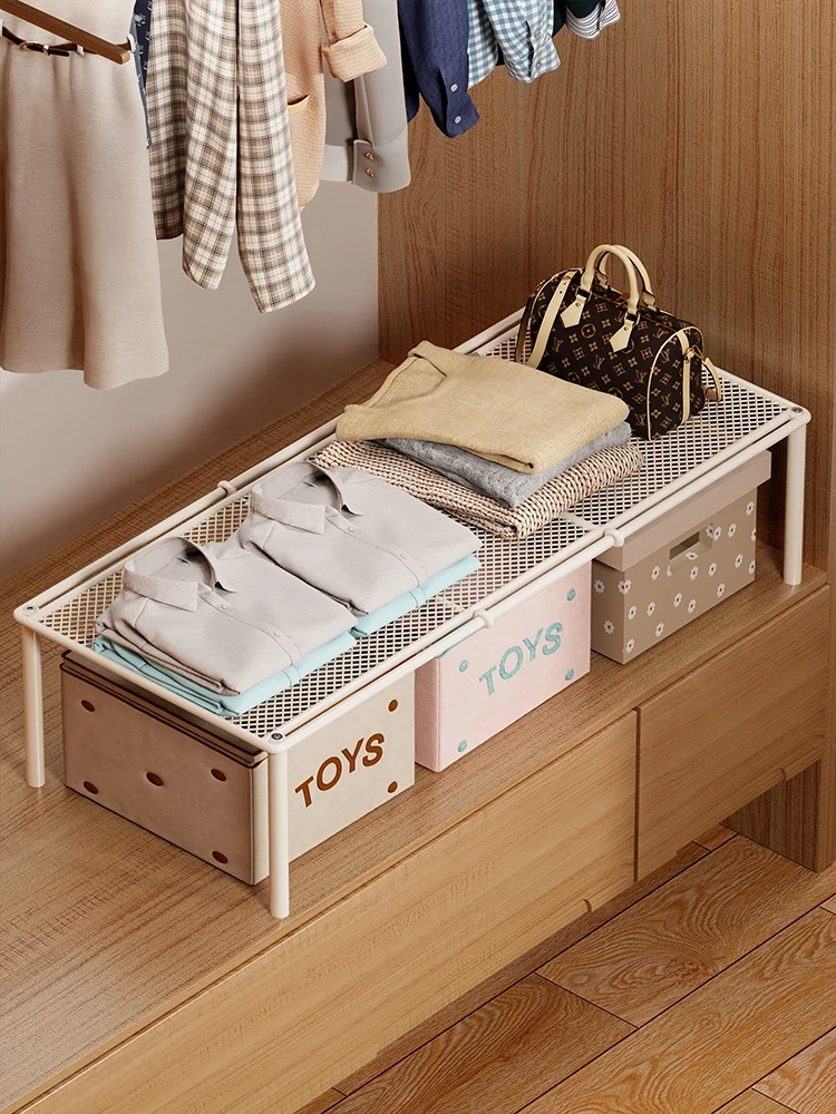 Expandable Layered Storage Shelf for Dorm Wardrobe - Perfect Organizer for Closet Separation and Space-Saving! Ideal for Efficient Clothing and Accessories Storage!