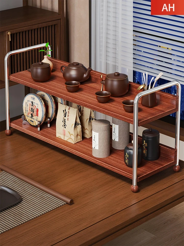 Vintage Desktop Display Shelf for Office Tea Set - Elegant Purple Clay Teapot and Teacup Stand, Perfect for Home Decoration and Organization