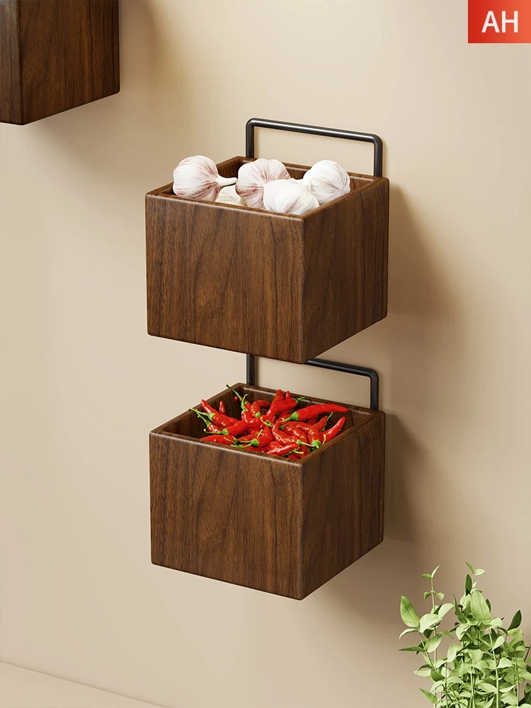 Solid Wood Onion, Ginger, and Garlic Storage Box - Multi-Functional Wall-Mounted Kitchen Rack and Spice Basket Organizer, the Ultimate Wall Hanging Solution for Your Kitchen!
