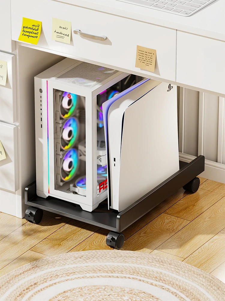 Mobile Computer Tower Stand with Wheels - Adjustable Desktop Holder for Home and Office, Space-Saving Storage Rack for Easy Access and Organization