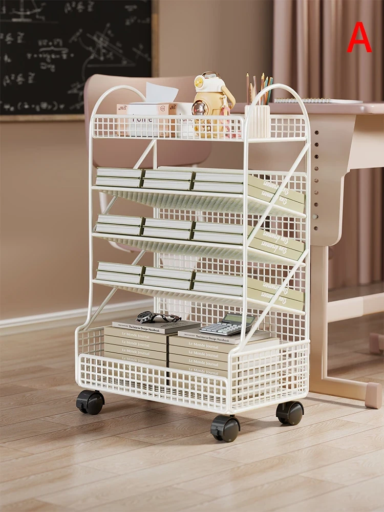 Mobile Side Storage Rack for Classroom Desks - Easy-to-Use Multi-Tier Book Organizer with Wheels, Spacious Design for Students' Supplies and Books