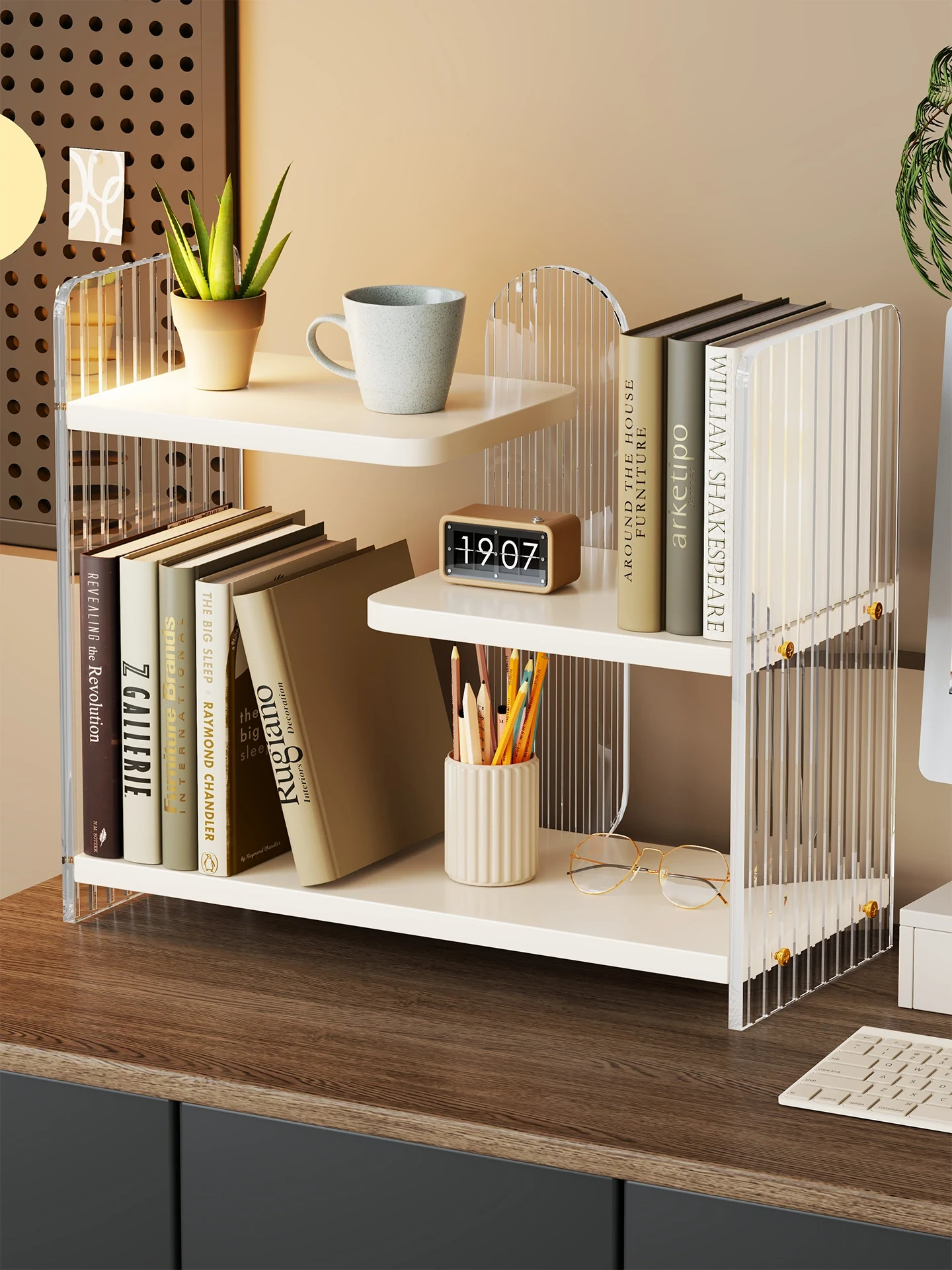 Acrylic Desktop Organizer - Multi-Layer Bookshelf for Office and Window Sills, Perfect for Stylish Storage and Easy Access to Your Books and Supplies.