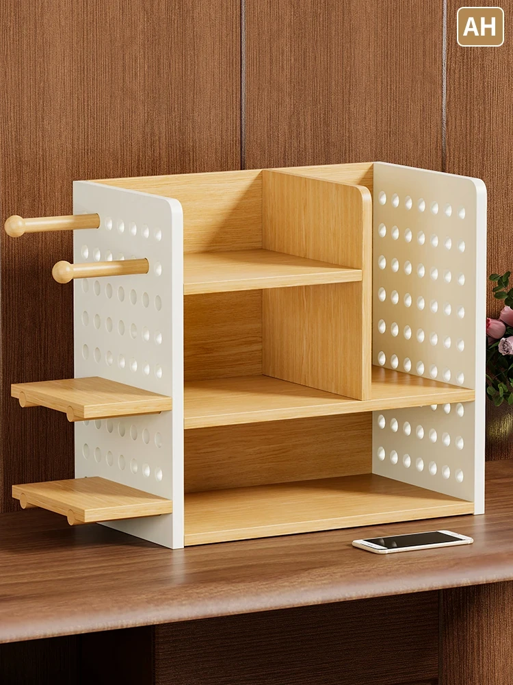 Multi-Layer Desktop Organizer Shelf - Versatile Pegboard for Home, Office, or Student Dorms - Perfect for Desks, Book Storage, and Efficient Workspace Management.