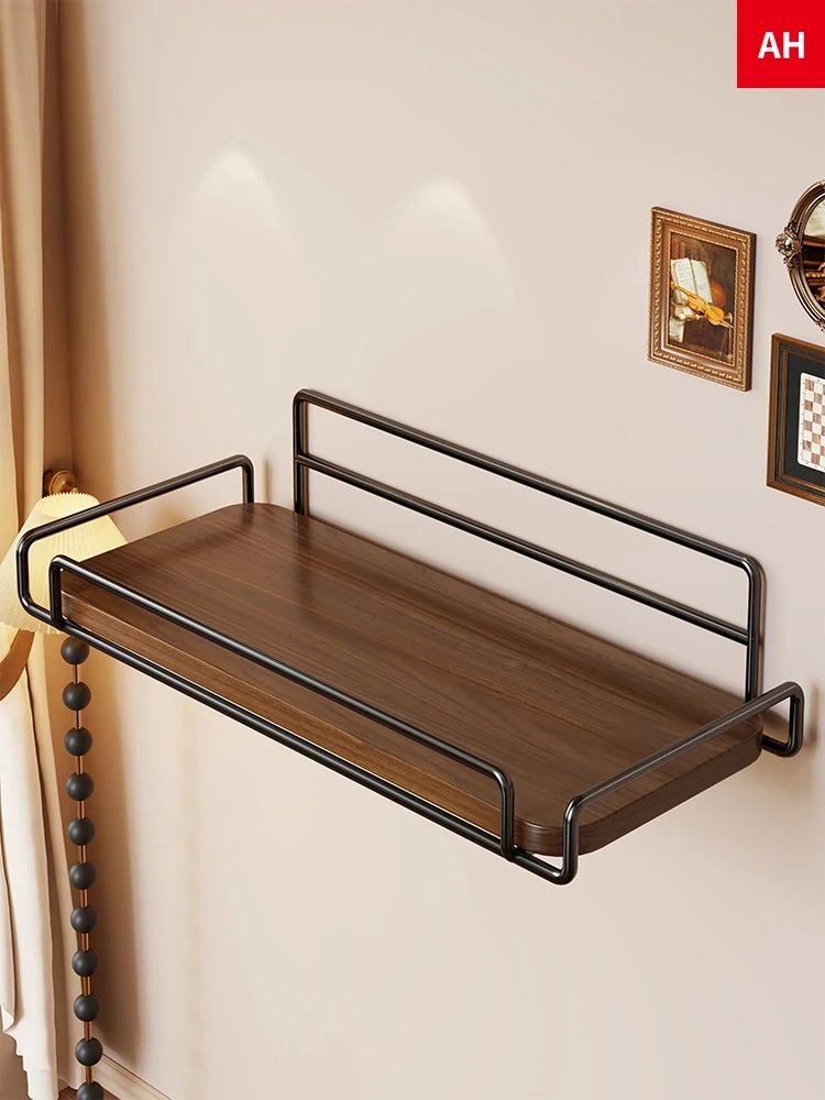 Solid Wood Wall-Mounted Shelf - No Drilling Required, Perfect for Router Storage, Living Room & Bedroom Headboard Organizer, Stylish and Space-Saving Design