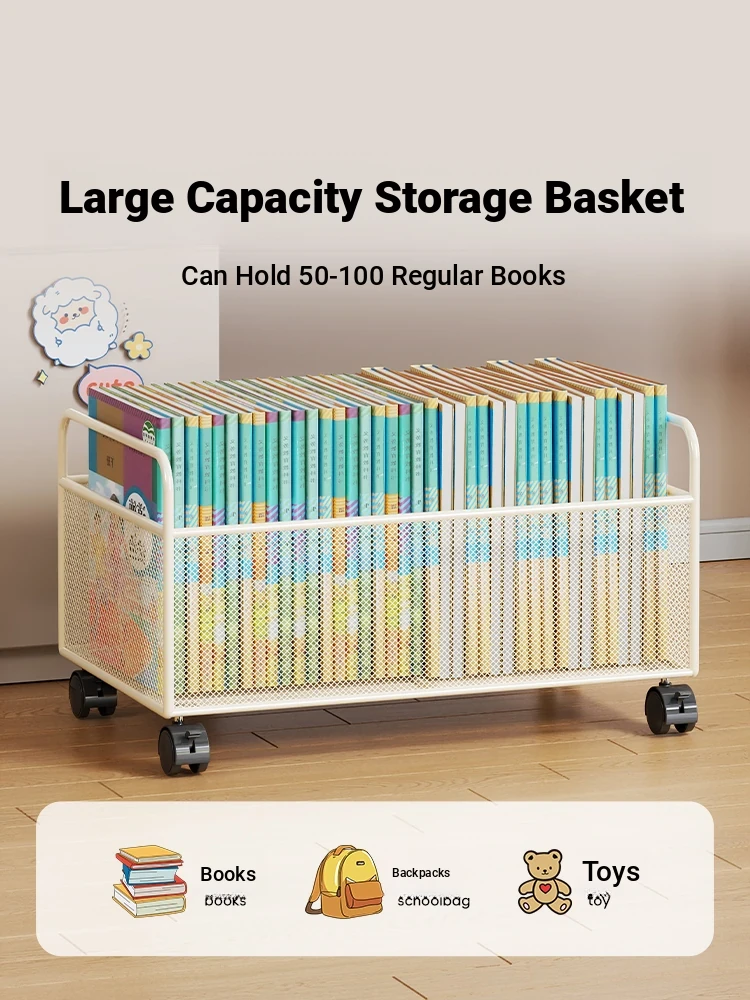 Mobile Bookshelf and Storage Cart for Students – Perfect Under-Desk Organizer for Classroom, Ideal for Books and Supplies, Space-Saving Design with Easy Maneuverability.