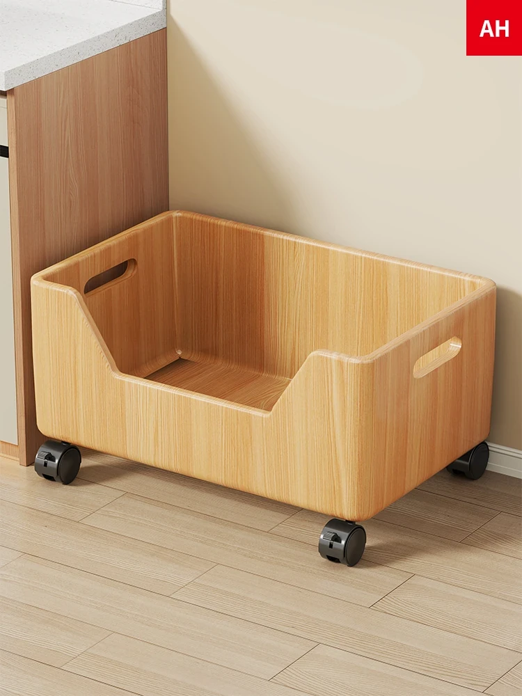 Solid Wood Kitchen Storage Rack - Versatile Floor Organizer with Multi-Functional Vegetable Basket and Cart for Home Use - Perfect for All Your Storage Needs!