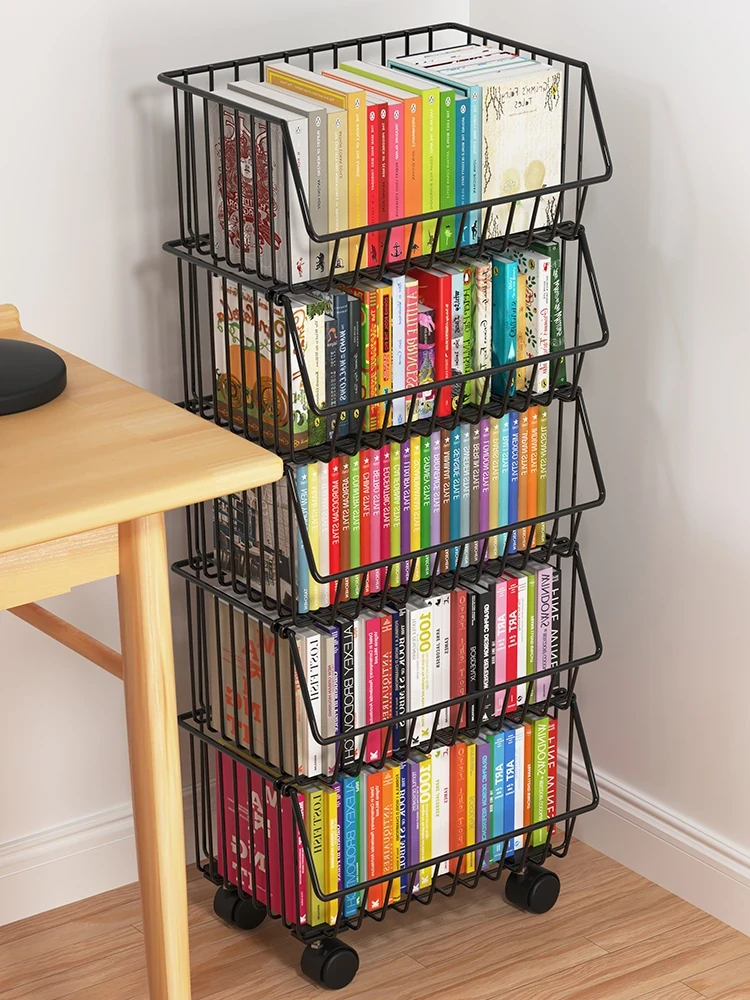 Movable Floor Bookshelf - Kids' Simple Storage Rack for Home, Ideal for Toy Organization and Baby's Reading Nook, Perfect for Picture Books and Easy Access!