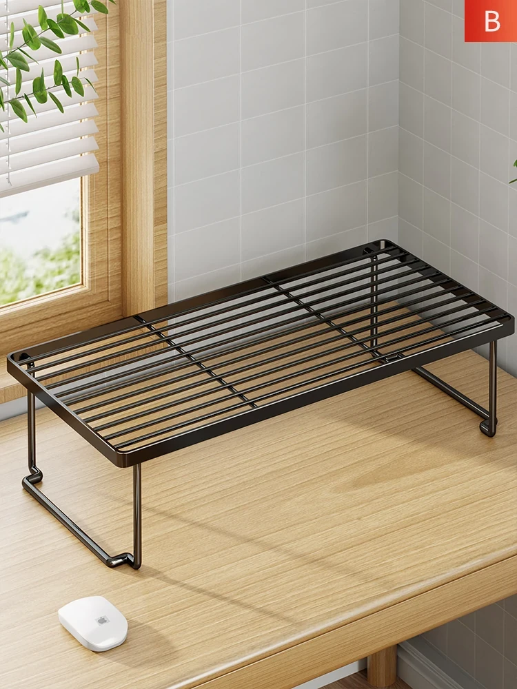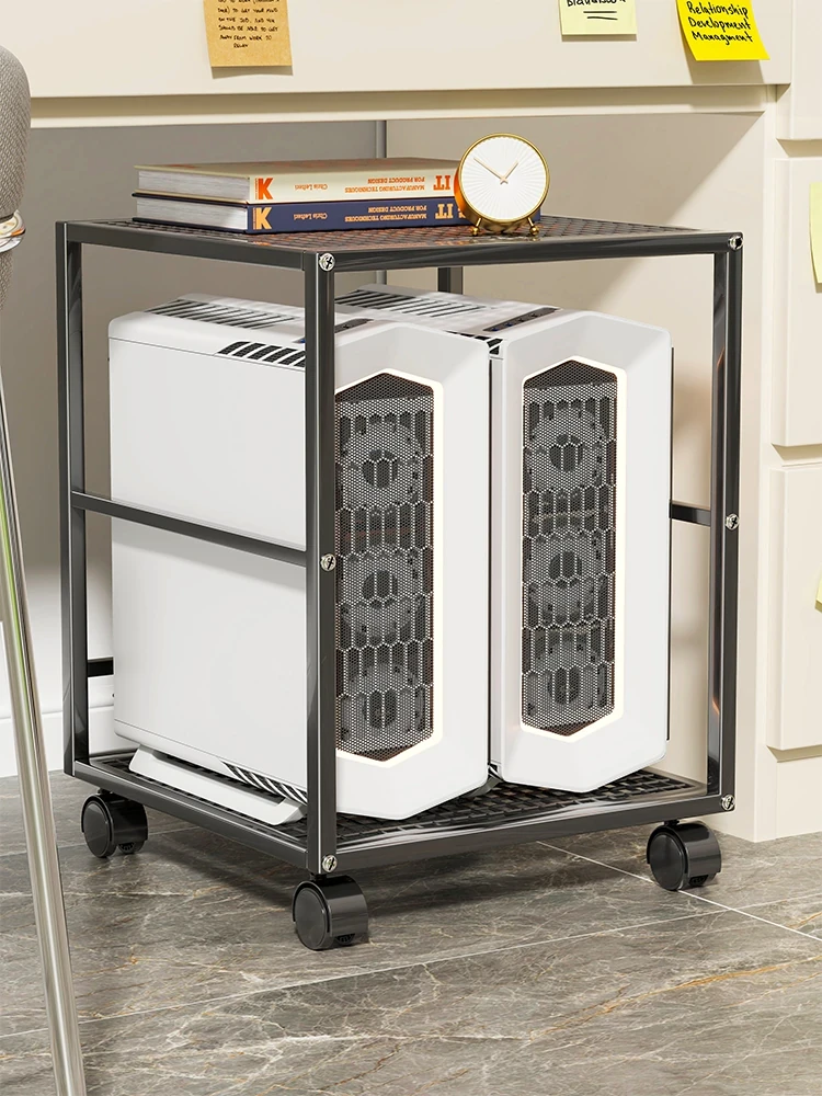 Elegant Double-Layer Iron Computer Case Stand - Mobile Desktop Tray Holder for Organized Space
