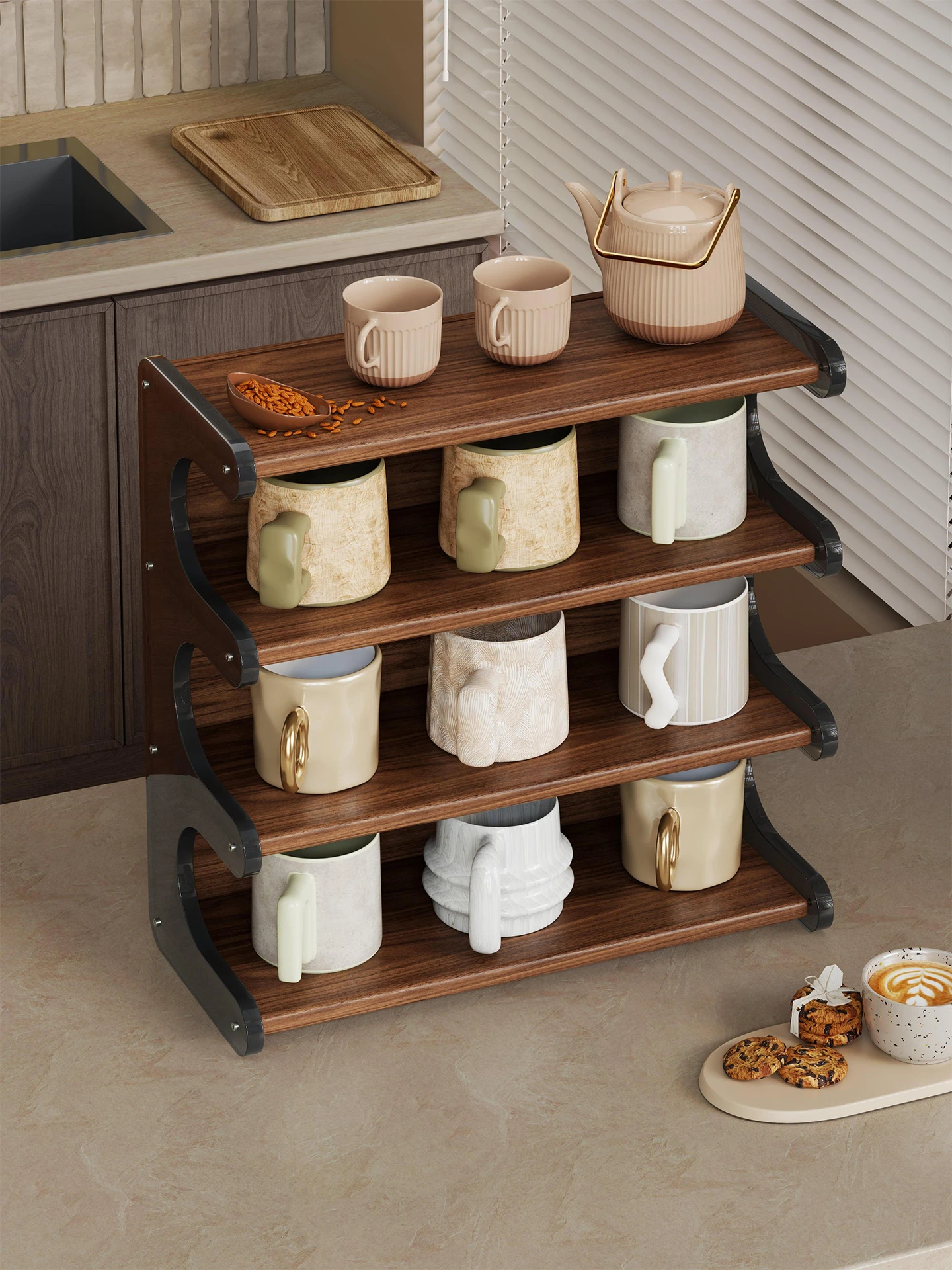 Multi-Tiered Desktop Cup Organizer - Stylish Storage Rack for Office and Dining Table, Perfect for Water Bottles and Small Items, Ideal for Women’s Workspaces