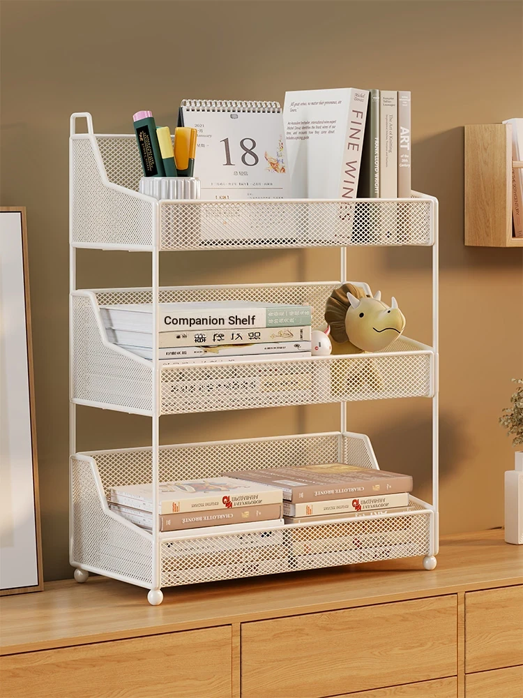 Stylish Multi-Layer Desktop Bookshelf - Office & Home Storage Rack, Minimalist Iron Organizer for Living Room and Workspaces, Perfect for Clutter-Free Organization!