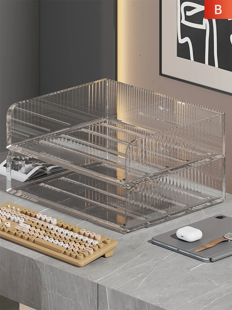 Multi-Layer Stackable Desktop Organizer - Clear Acrylic File Storage Rack for Office Use - Perfect for Document and Stationery Organization