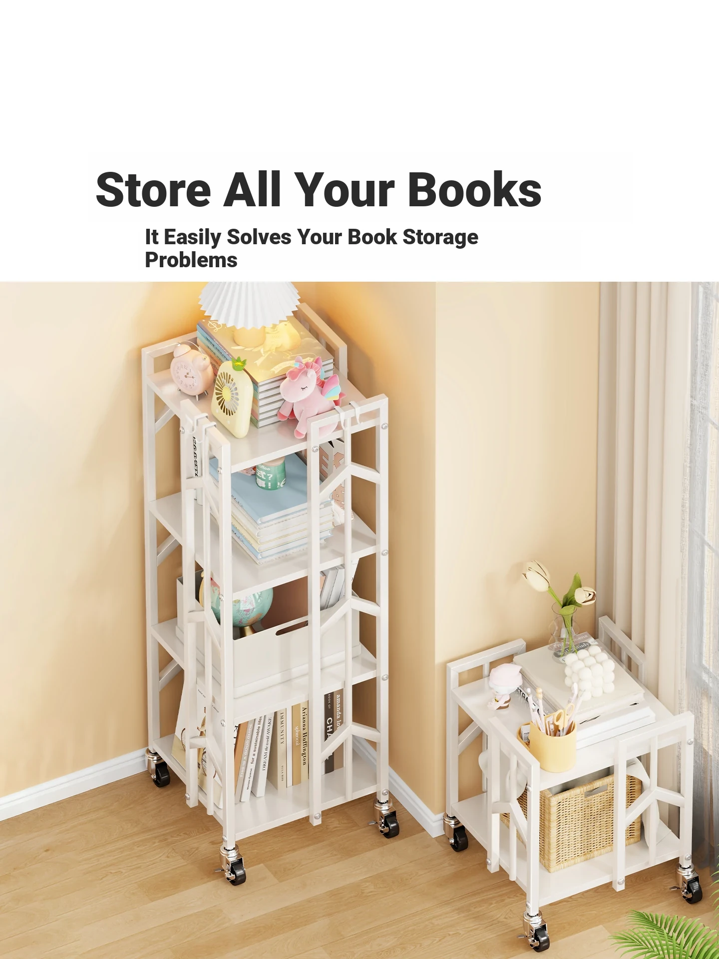 Mobile Under-Desk Children's Bookshelf with Wheels - Floor Standing Book Cart for Picture Books and Desk Organization, Perfect for Students!