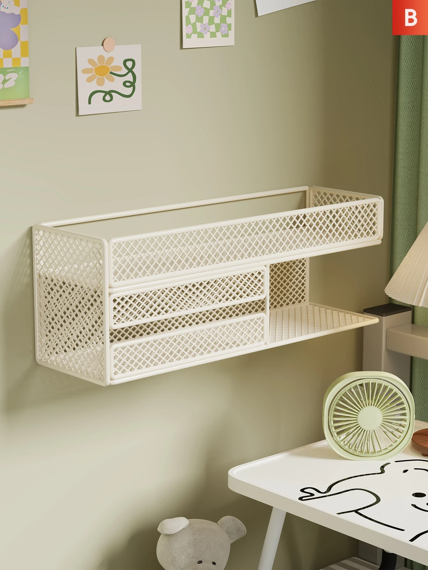 No-Drill Wall-Mounted Storage Shelf - Dorm Room Organizer, Perfect for Storing Baskets and Hanging Bins Above and Below Beds, Ideal for Students' Room Decor and Efficient Space Management!