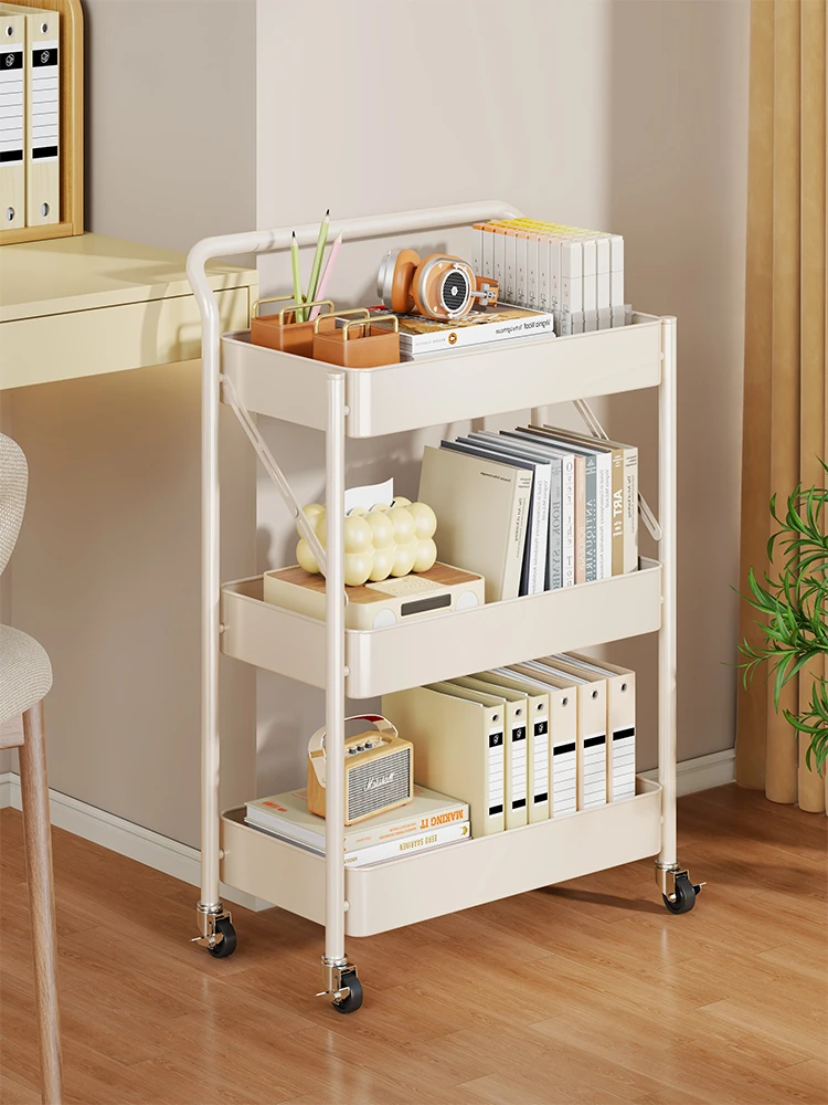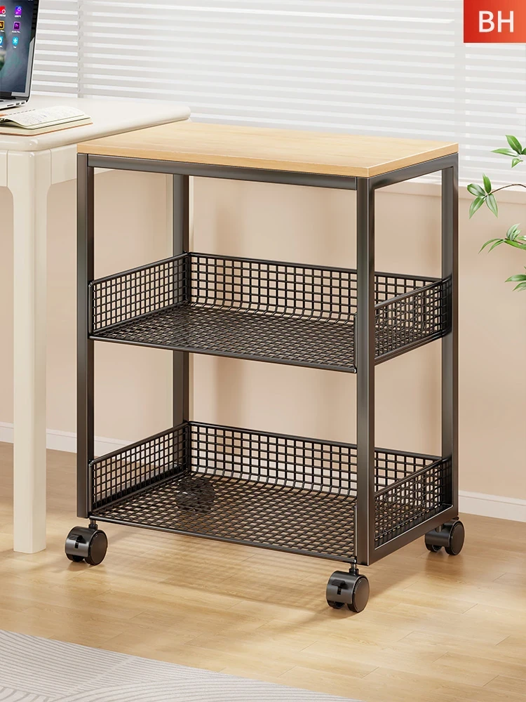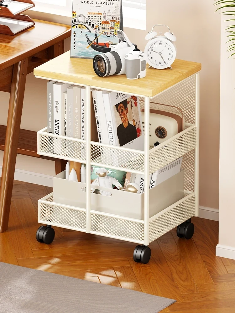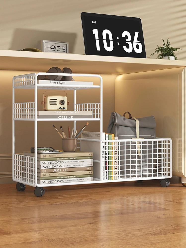 移動可能なキャスター付きデスクサイド収納ラック|本棚・収納に最適な便利アイテム|作業スペースをスッキリ整理!