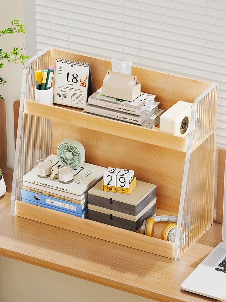 デスク上に最適な多層収納ラック!シンプルでおしゃれなデザインの書籍棚は、学生や家庭用にぴったり。机上の整理整頓をサポートし、快適な作業環境を実現します。