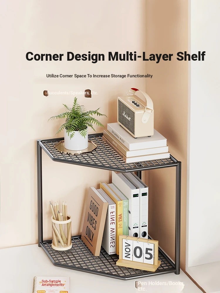 Corner Storage Rack - Triangular Desktop Bookshelf for Office, Multi-Layer Small Corner Organizer, Stylish Fan-Shaped Storage Solution for Your Workspace