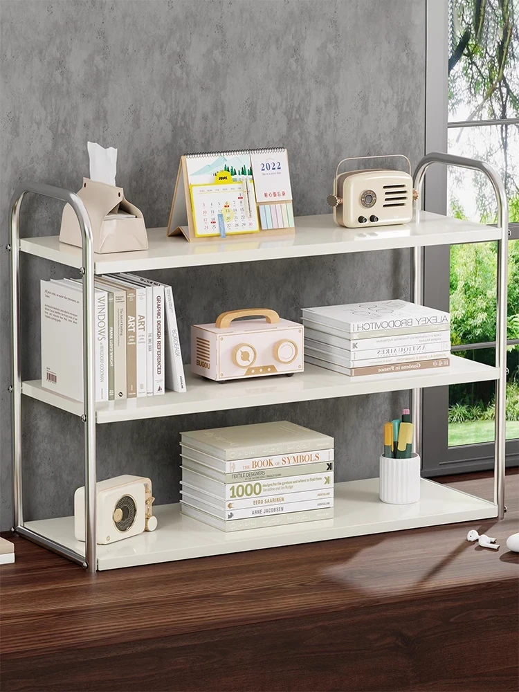 Multi-Tier Desk Bookshelf - Stylish Office Storage Solution, Ideal for Organizing Books, Stationery, and Electronics - Perfect for Home, Office, or Bedroom Use