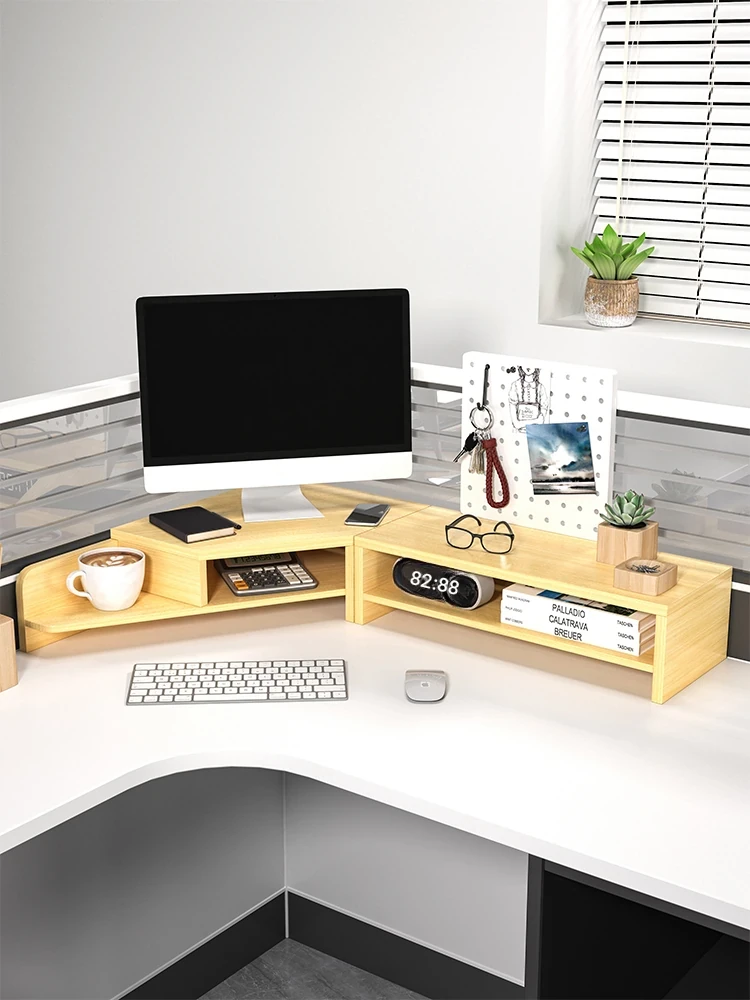 Corner Computer Monitor Stand - Triangular Office Desk Organizer for Desktop Storage, Perfect for Workstations and Home Offices