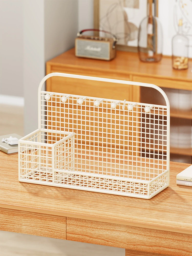 Stylish Iron Desk Organizer with Storage Rack - Perfect for Students! Multi-functional Stationery Box for Study Desks and Entryway Key Holder Decor. Keep Your Space Tidy and Organized!
