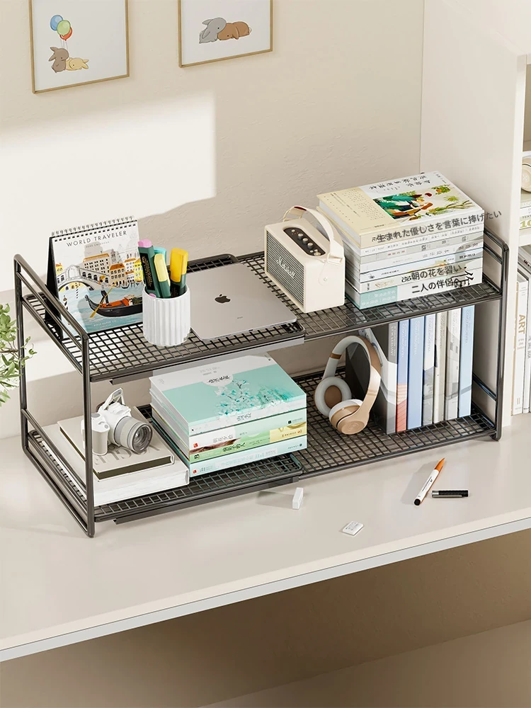 デスク上の多層整理ラック - 学生向けの収納スペースを最大化!伸縮可能なデザインで、デスクをスッキリ整頓。学業や仕事に最適なアイテム!