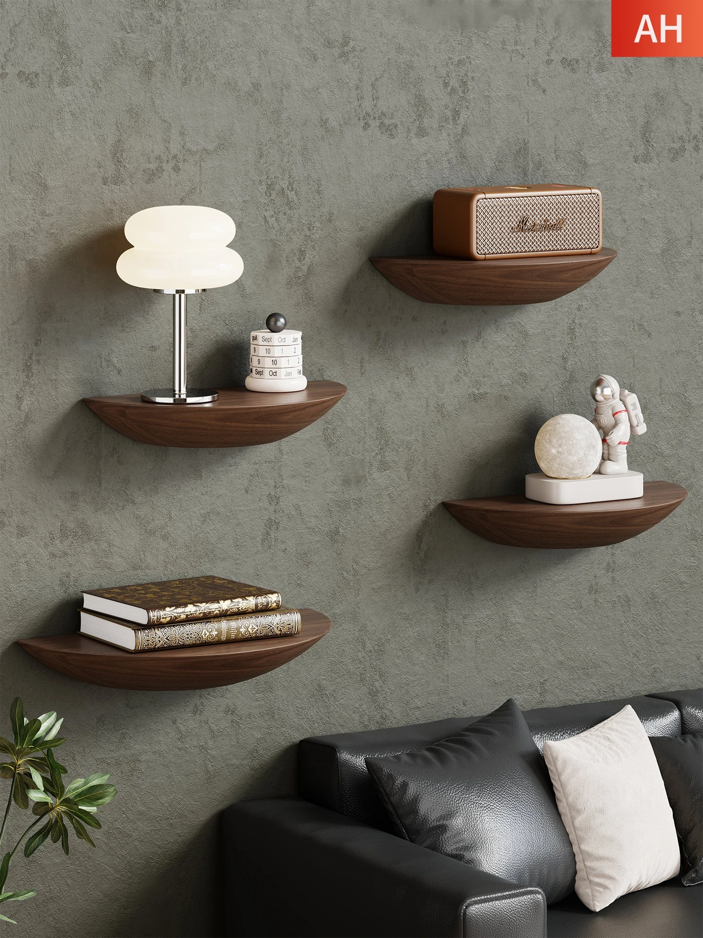 天然木材使用の壁掛け棚 - 寝室やリビングに最適なスタイリッシュなディスプレイシェルフ!雲字型のデザインが魅力的で、レストランにもぴったりの空間装飾に。あなたの空間をおしゃれに演出します!